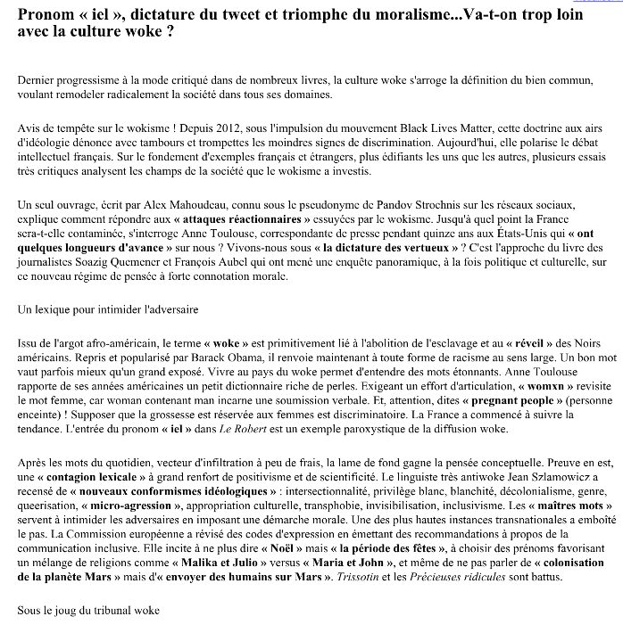 Lisez le nouvel article paru dans Ouest France intitulé « Pronom « iel, dictature du tweet et triomphe du moralisme…Va-t-on trop loin avec la culture woke ? », dans lequel Emmanuel Pierrat est cité à l’occasion de la sortie de son dernier livre « Les Nouveaux justiciers. Réflexions sur la cancel culture » (Bouquins).