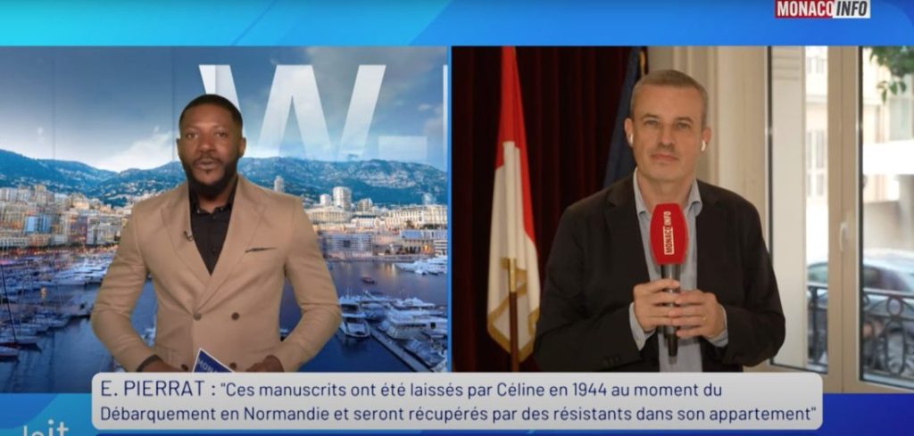 Emmanuel Pierrat était l’invité du Journal télévisé de Monaco pour présenter son ouvrage : « L’Affaire Céline. La véritable histoire des manuscrits retrouvés » (éditions Écriture/L’Archipel)